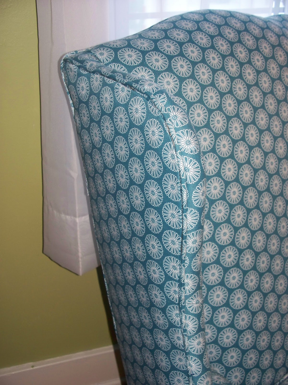 Final chair update. (see the start of this project here) The upholstery tacking strip that I ordered finally came in the mail and so on this past lovely Wednesday/blizzard/snow day, I set to work. I just had to finish up the sides and the back. It took some practice, I'll tell you... but after the third piece of 'curve-ease', I started to get the hang of it. Here she is in all of her finished glory (reeaaallly not sure that I want to give her up!)